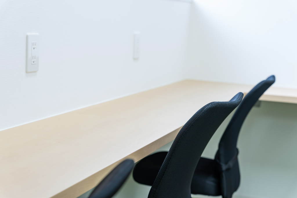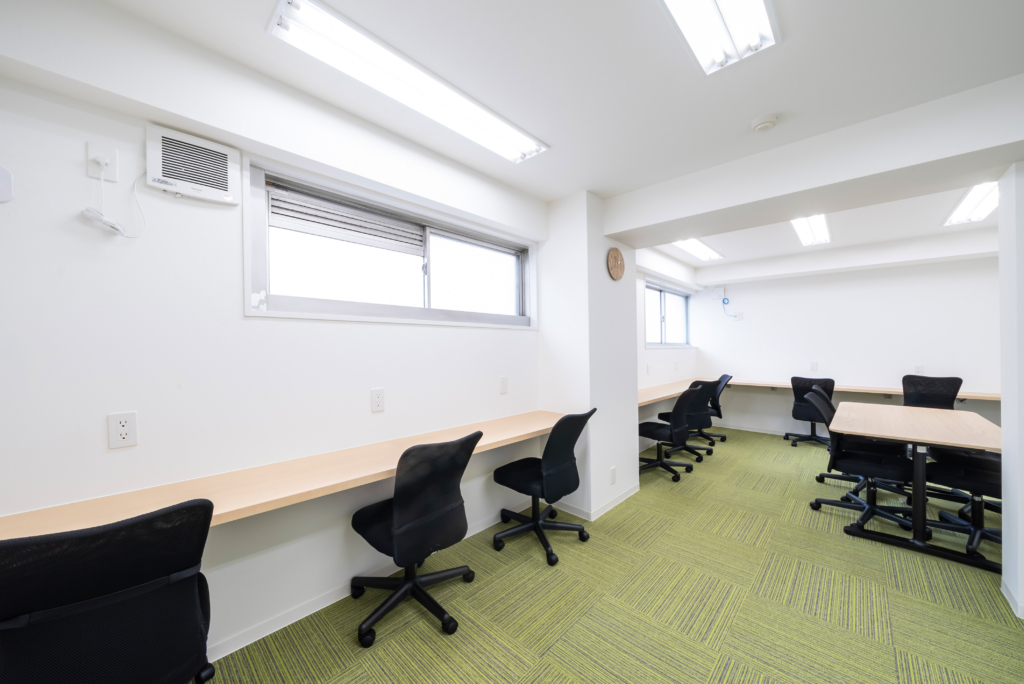 入居者全員利用可能な全12席の1Fワークスペースです。無料Wi-Fi、各席ごとに電源コンセントが完備されており、お仕事や勉強に最適です。